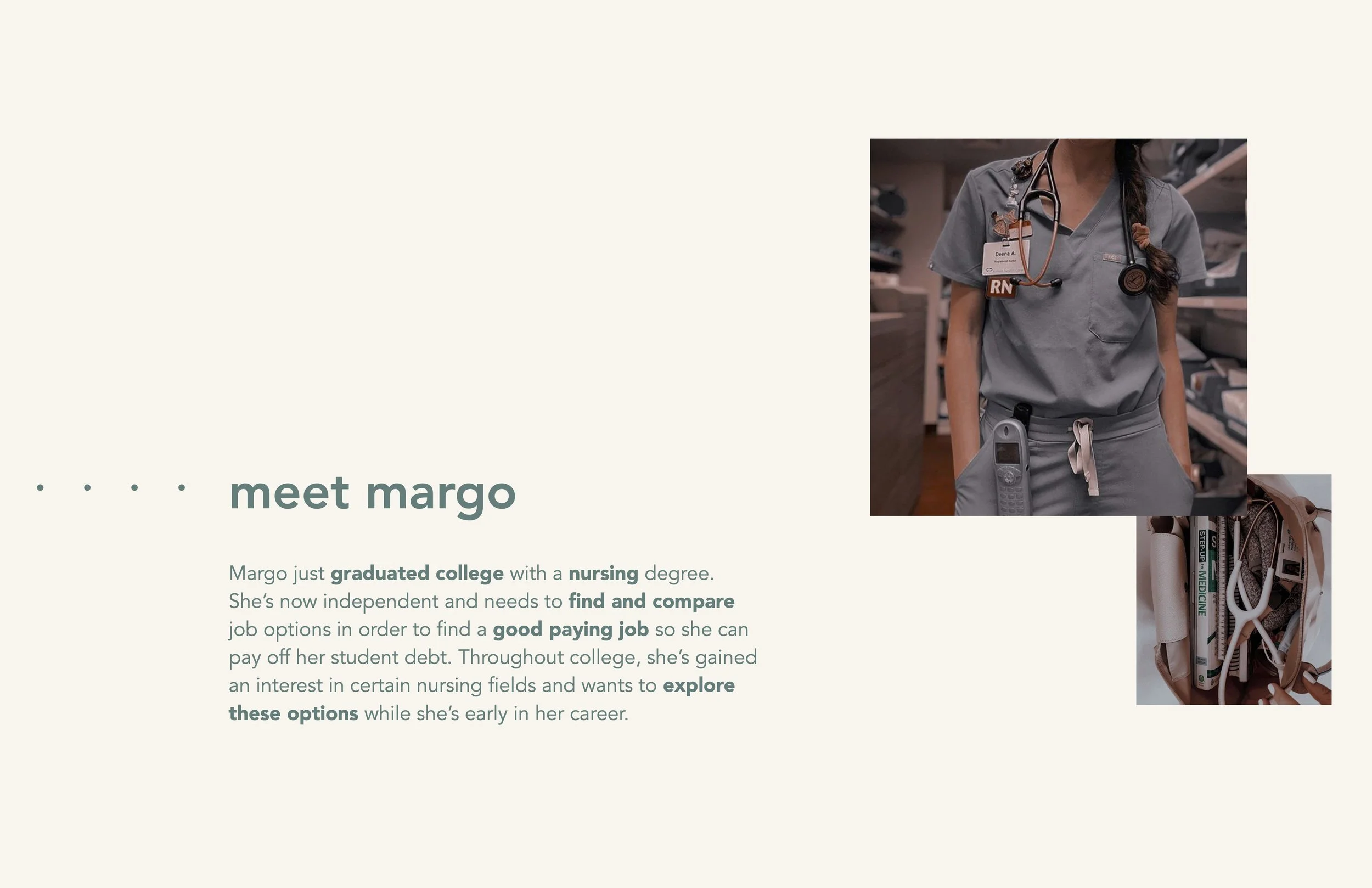 In order to streamline a task flow, I created a fictional persona, Margo.